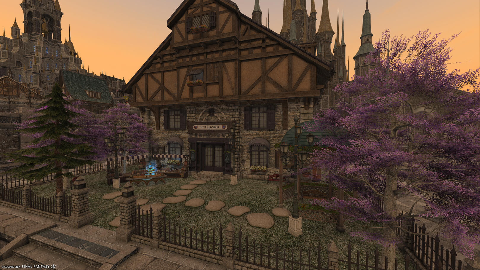 Balmung Server, Crystal Data CenterWithin the cold climes of Ishgard's Emperyum District, with a cliffside at its back and a flowing stream beneath the small bridge that marks its entrance is nestled a large mansion with a finely manicured yard in the fifth ward Lavender Northeast subdivision. Once housing a rowdy free company of adventurers many summers ago, it now serves as the site of the Shroudrose Teahouse and Speakeasy, a teahouse and upscale bar and lounge serving everything from specialty tea blends, to a wide array of spirits and cocktails, to light meals and snacks both sweet and savory.